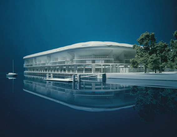 Artist's impressions of the swanky 30,000-seater high-tech replacement for our beloved Cottage. The famous tree and the Cottage would have to be sacrificed were this to be given the final 'okay'; note the jetty, handy for up-river away-days. Mysteriously the estimated cost jumped to £100m from the original estimate of under £60m, strange that, and oh yes the Craven Cottage ground had been sold in the meantime, Eh?????